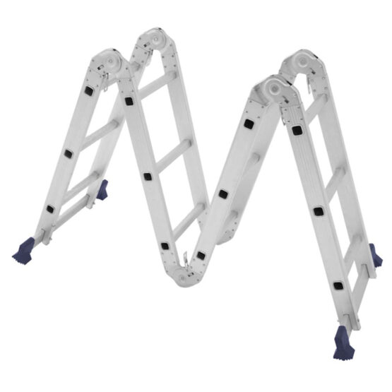 Super resistente, suporta até 150 Kg. Possui catracas com excelente qualidade, travamento automático na extensão e ponteiras emborrachadas abauladas para melhor aderência no piso, garantindo segurança total durante sua utilização. Estável e versátil, a Escada Multifuncional oferece diversas possibilidades de uso. Fácil de utilizar, em menos de um minuto você pode trocar a posição alcançando superfícies mais altas e lugares de difícil acesso com agilidade. Possui 4 partes de 3 degraus com ranhuras antiderrapantes, alcançando a altura de 3,36m quando totalmente estendida. Sua estrutura é de alumínio, compacta e leve para manuseio, com dobradiças em aço. Por ser totalmente dobrável, ao fechá-la seu volume diminui ocupando pouquíssimo espaço. Além disso, as escadas da Mor são fabricadas de acordo com a Norma Europeia EM-131, o que garante a certeza de um excelente produto. É a ferramenta que você precisava para as tarefas do dia a dia e para uso profissional!
